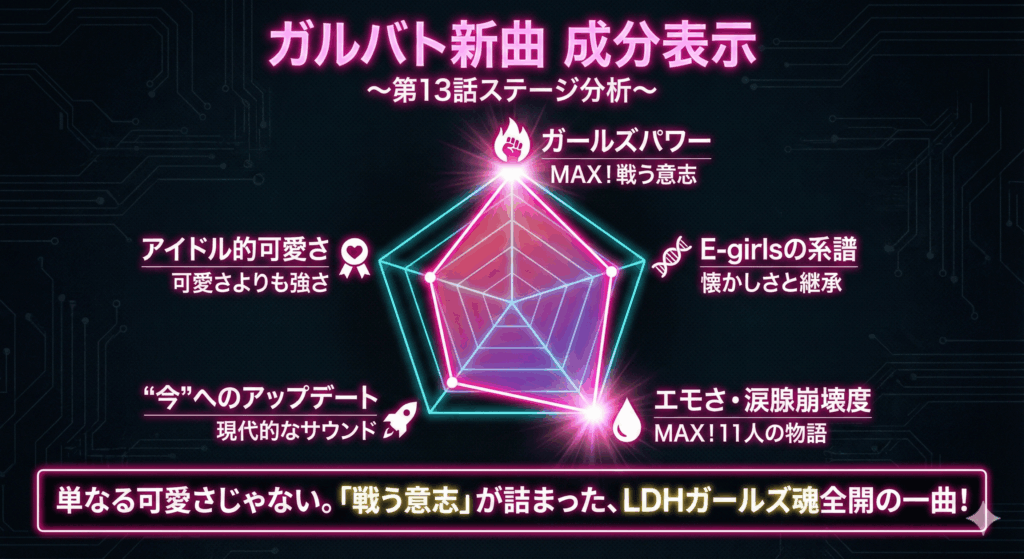 第13話は、単なる新曲お披露目回ではなく、「LDHガールズの歴史を更新する一歩目」として記憶される回になりそうです。
