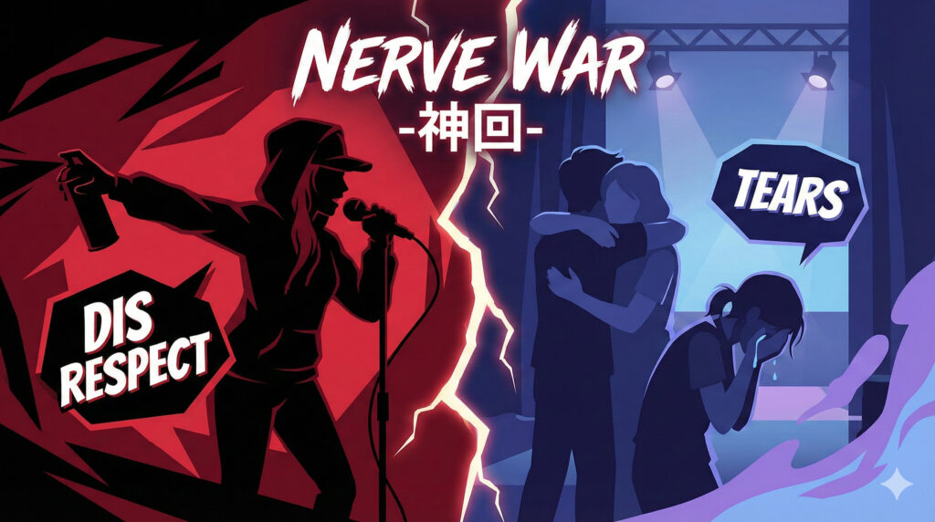 単なるパフォーマンス対決ではなく、感情とプライドがぶつかり合う「神経戦」。