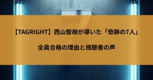 TAGRIGHTのメンバー選考では、非常に責任感溢れる西山智樹さんの性格が伝わってきました。
